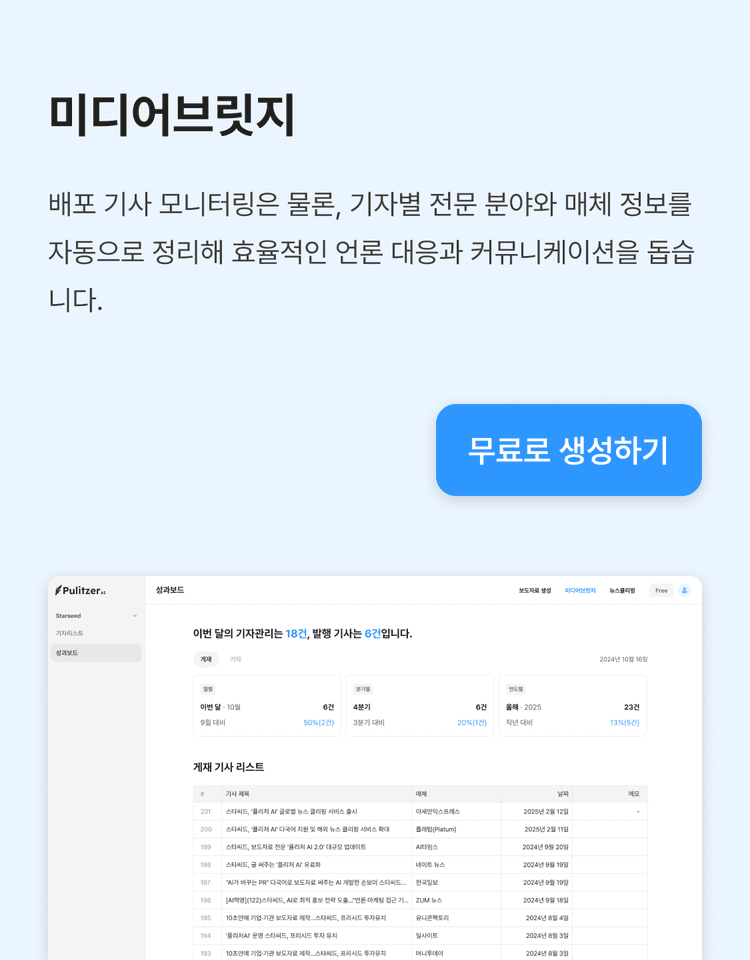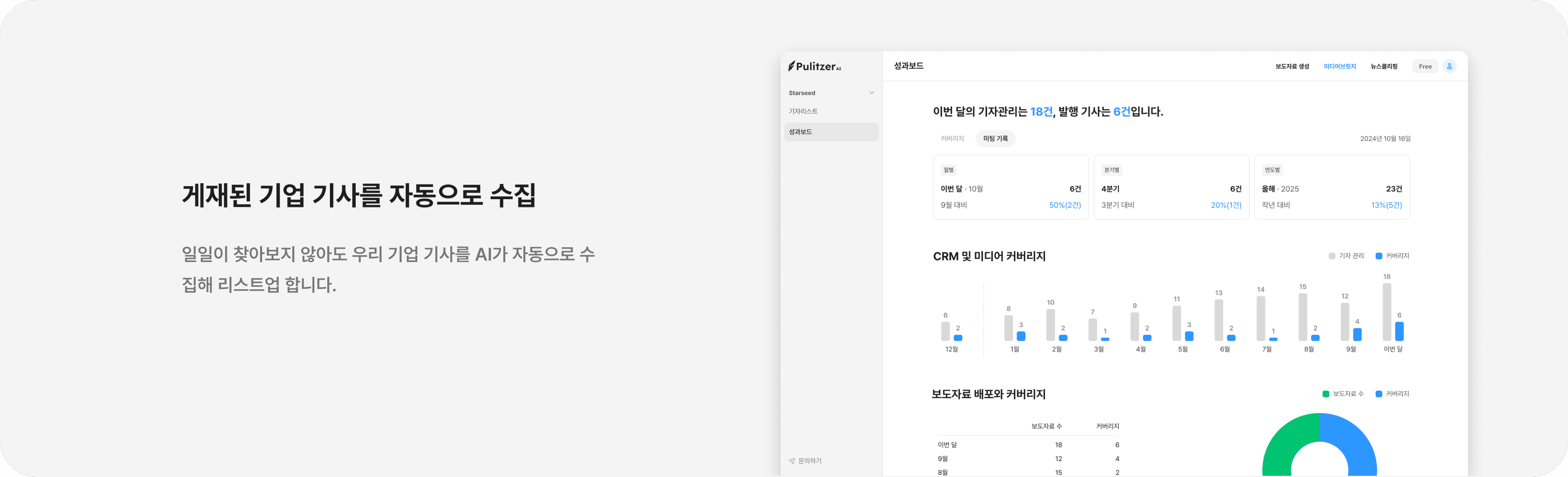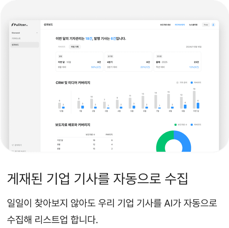 PR 성과를 체계적으로 관리하고 우리 기업 기사를 자동으로 추적하세요